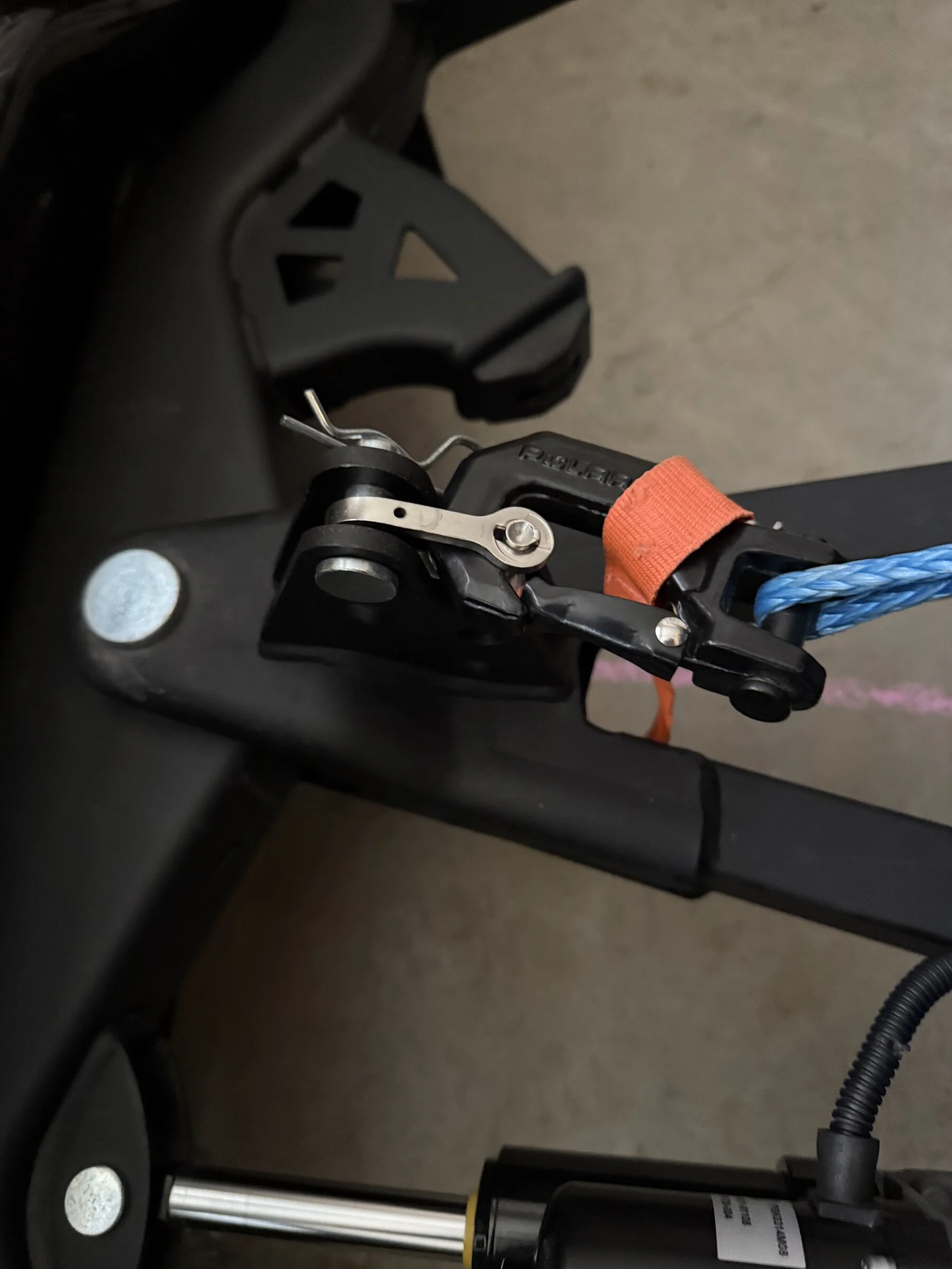 I took the rod off and used a D-shackle on the clevis pin, then connected the winch line hook to the shackle — see photo. The shackle is stainless steel that came from my sailboat.So I’ve been following this thread,and I’m getting the assumption that the winch doesn’t allow it to lift high enough, the vertical hydraulics don’t have the capacity and the tilt hydraulics aren’t long enough to tilt far enough to the right? Is all this correct?