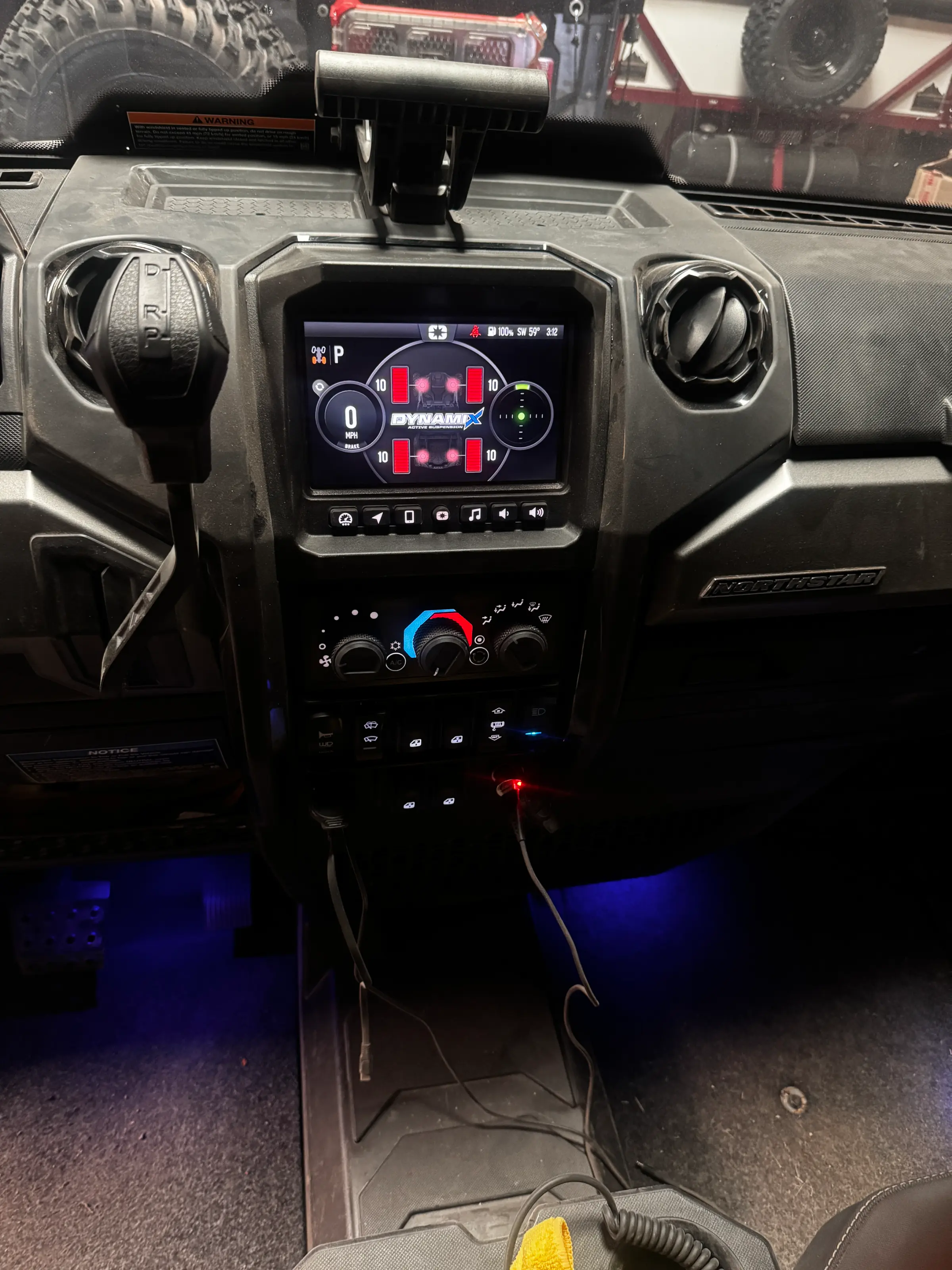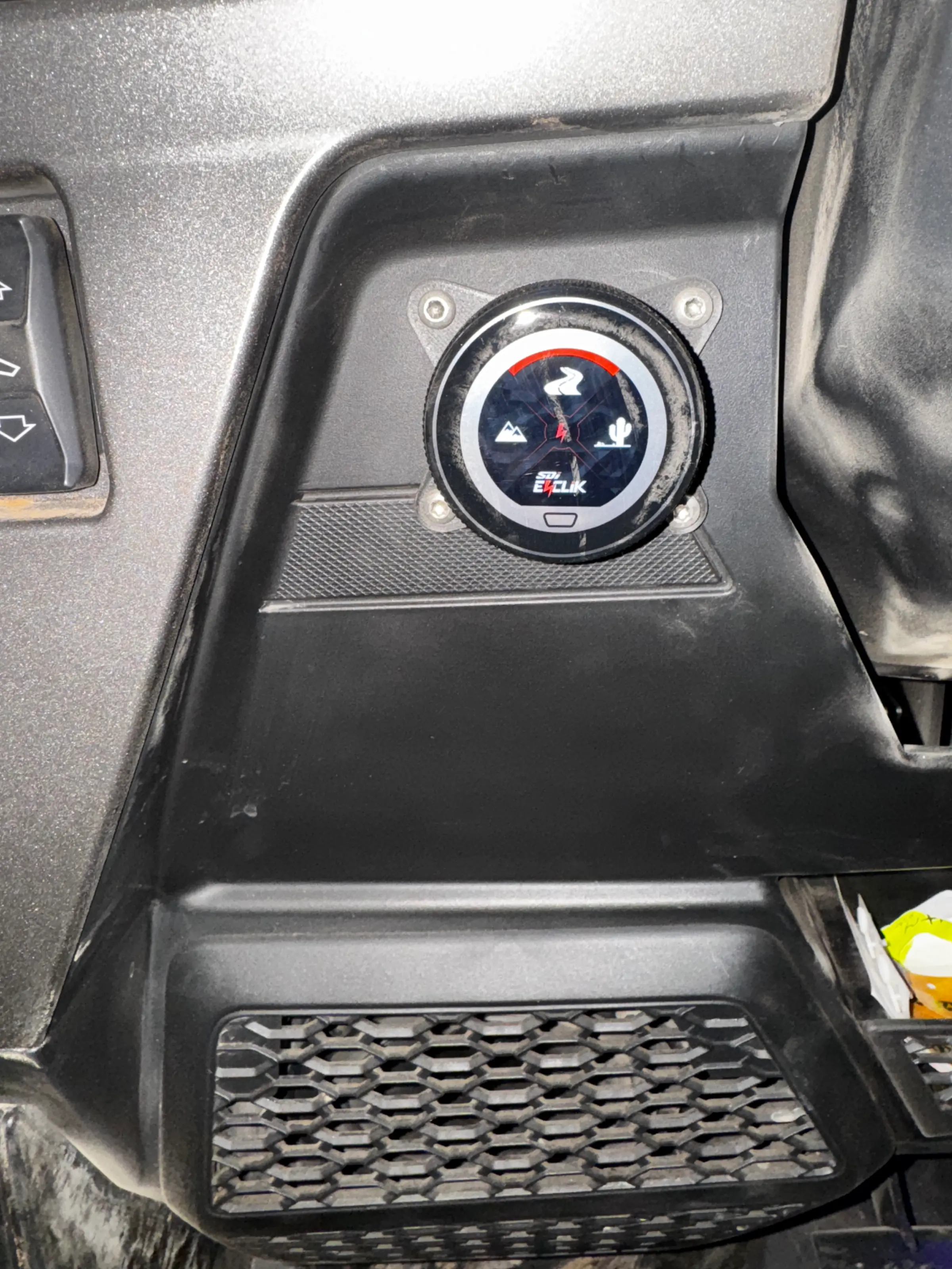 It’s SDI Ecliks, but they tie into the ECU and display the information on the Ride Command as Dynamix. They have a touchscreen and rotary controller for changing modes a setting up how the shocks work.