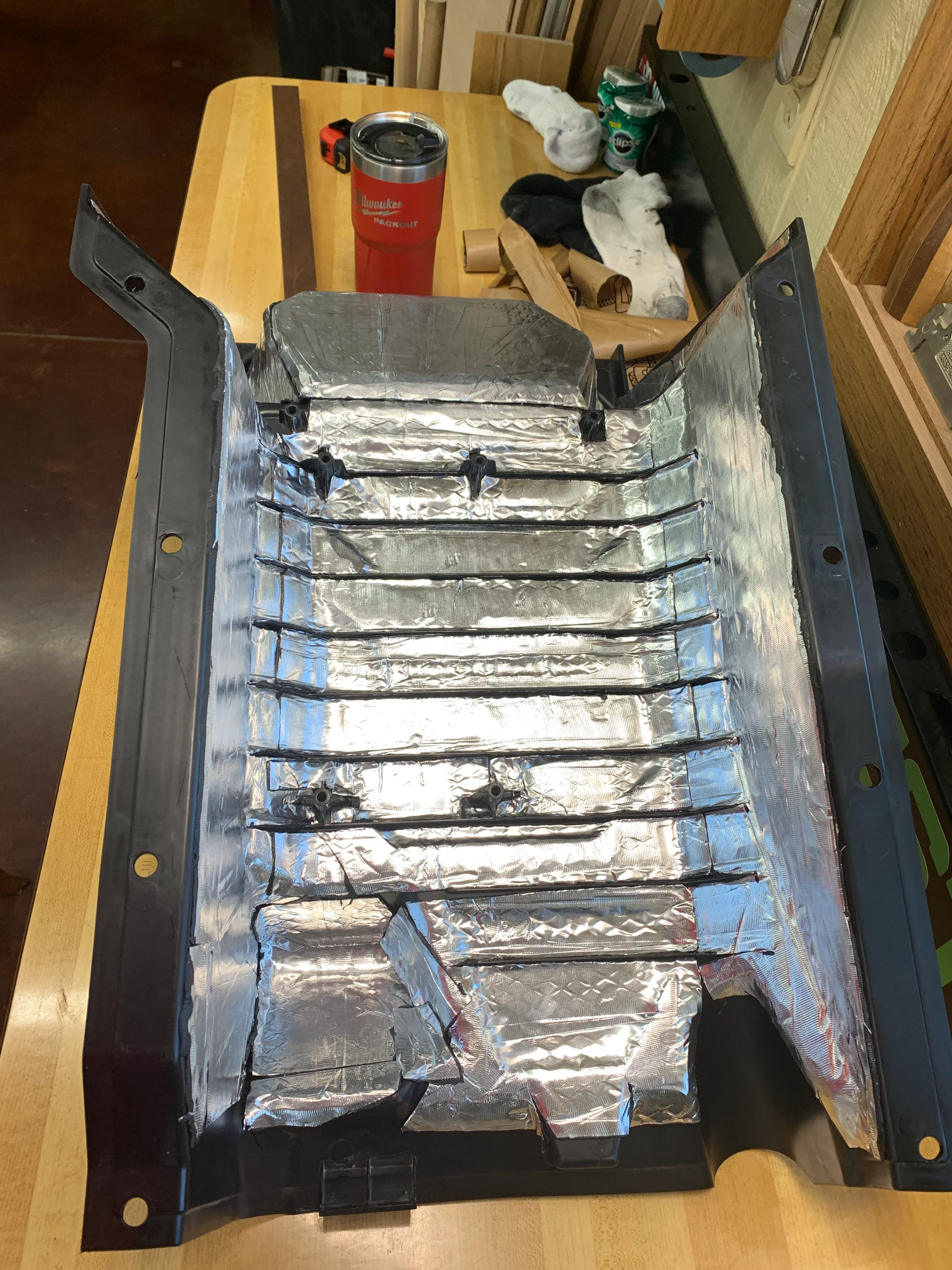 I have the same problem with the heat coming from under the dash, around the steering column, through the door latches and so on. A lot of people talk about insulating the tunnel and the back wall but I don't think that either of those will make much difference while driving at speeds of 35 mph and up. At slow speeds maybe, but at speed not so much. There are 3 large radiators up front and fans blowing on them to remove the heat.......where do you think all that heat is going to go when your traveling at 35 mph? It's going to get forced backwards into the plastic firewall and go through any crack it can find. If you have the just the windows down it's worse as it seems to create a vacuum in the cab that sucks in both the heat and dust. I have found 2 options to minimize the heat / dust.