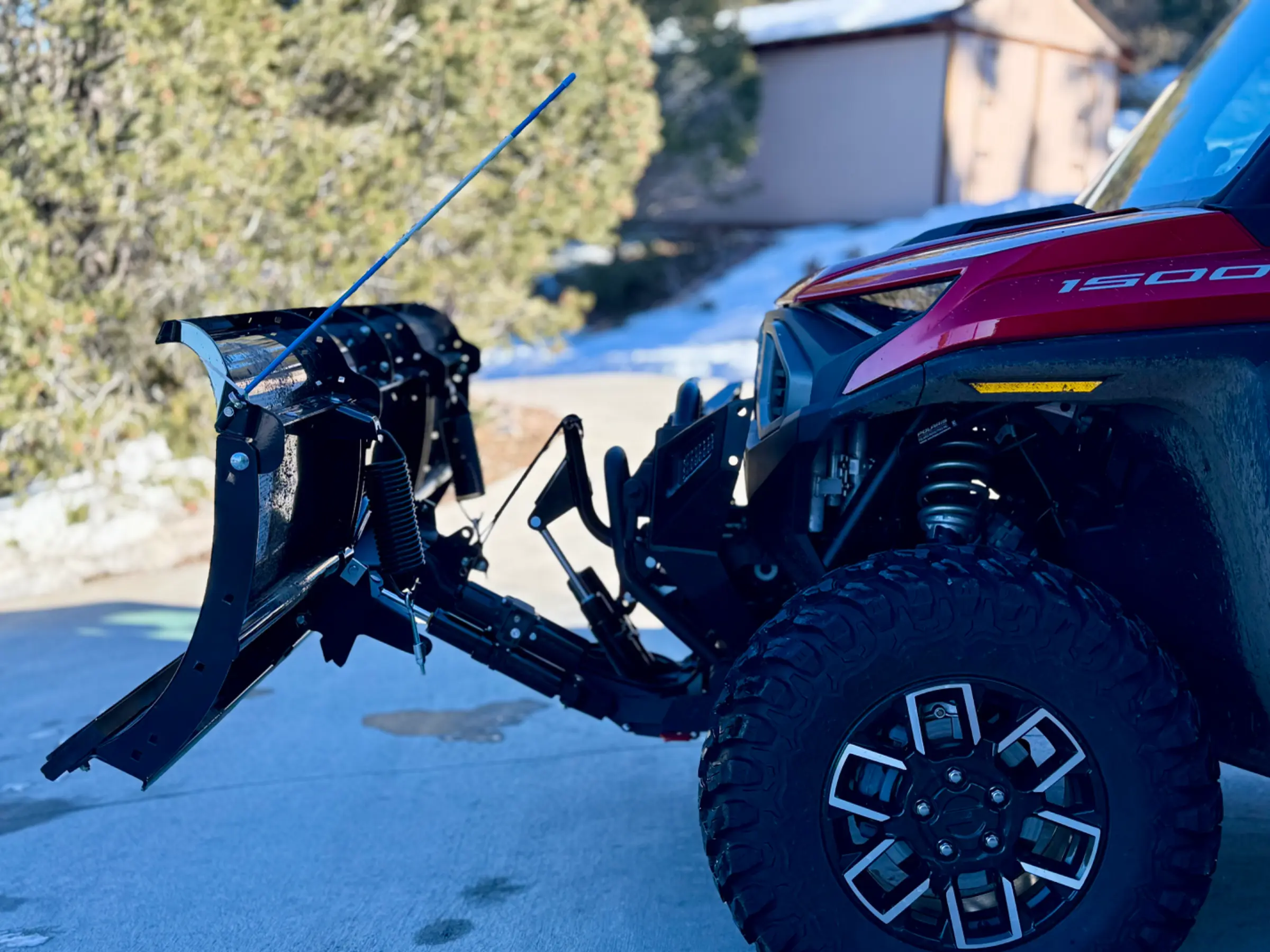 We ended up with 1.5” of dry Rocky Mountain powder. I plowed our 10,000+ sqft concrete driveway this cold morning. The hydraulic plow lift works okay but is very slow to cycle up & down. Glad I’m retired and have the time.Only getting an inch of snow today. Not a great test of the hydraulic plow lift.
