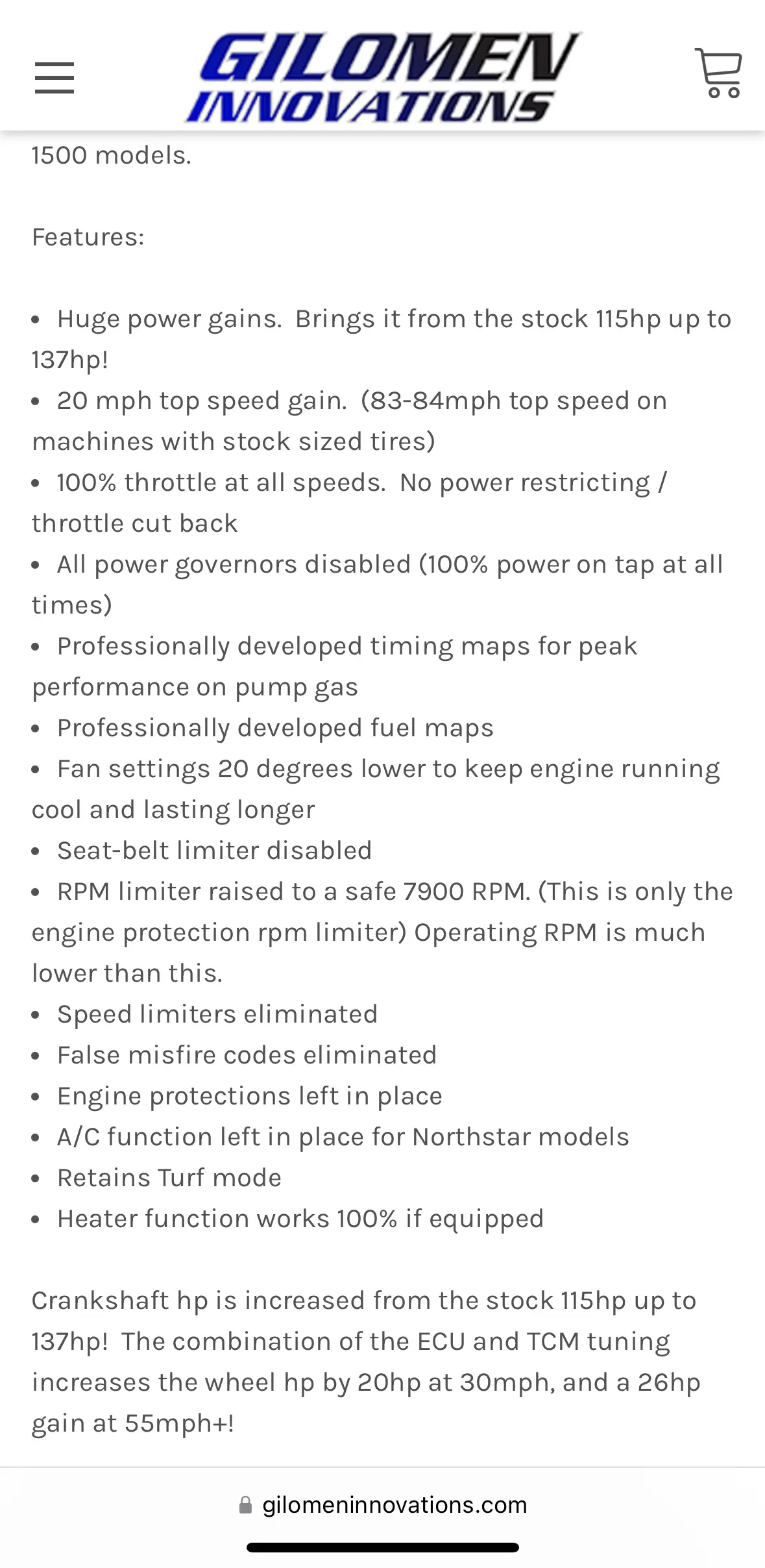As soon as I get mine back from some warranty work I think I will get mine. Did you pick up an additional ECU ?For anyone that might be interested, the Gilomen ECU/TCM tune can eliminate the speed limiter on tow/haul… along with a bunch of other fixes. It feels like an entirely different machine after the tune.