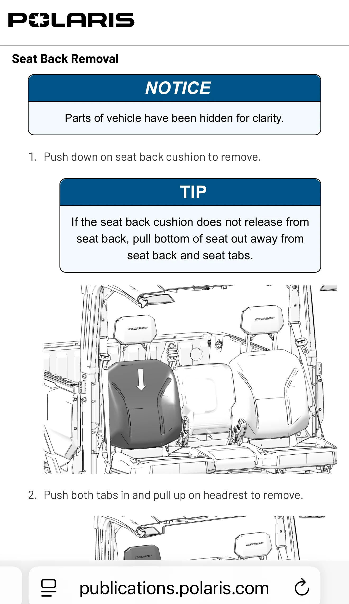 Thanks for the reply. I’ll give it a yank. I purchased a 1500 XD Premium, and I just installed the wiper system, bumper lights, and front bumper accessories. I didn’t find much YouTube video on removing the seats.You might have to yank a little harder than you want to remove the back seat as stated in Polaris's notes. I had to do this (Yank Harder)....no jokes please LOL, to remove the bottom of the Drivers seat to expose the "Hidden" storage pocket under the seat.