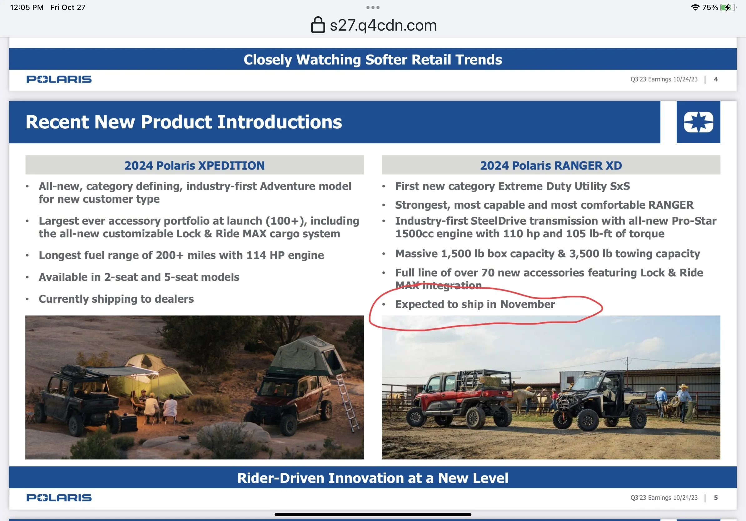 It’s November lol. Any news. Lol.From Polaris’ earnings report for 3rd quarter published October 24. Says expected to ship November. Most solid info to date.