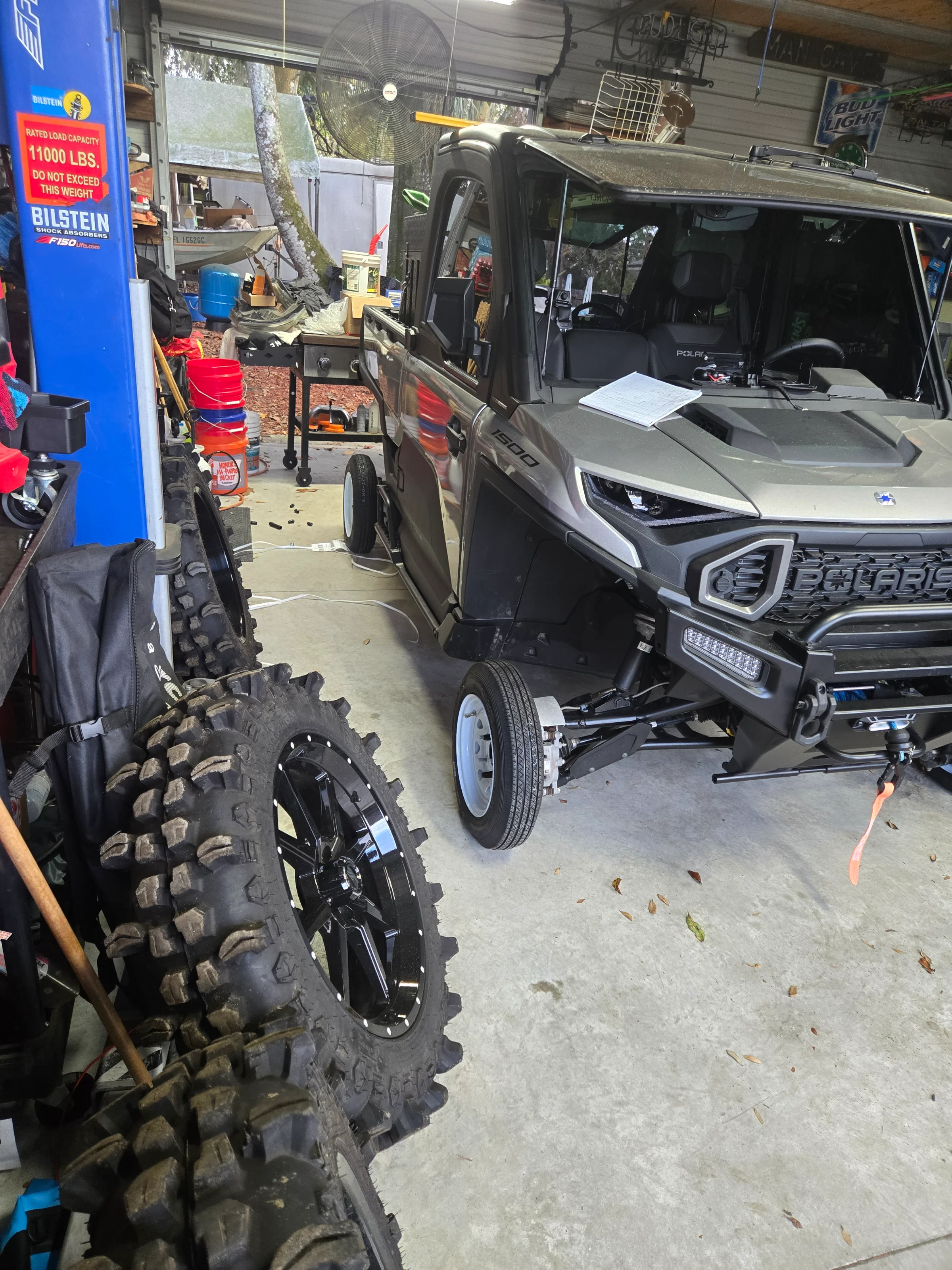 I was trying to get a toy hauler and we wanted the inside bunk for our son so after research and trial and error here is the girl with roll arounds so she can squat under the beds/table in the toy hauler and underneath the loft bed for my son.