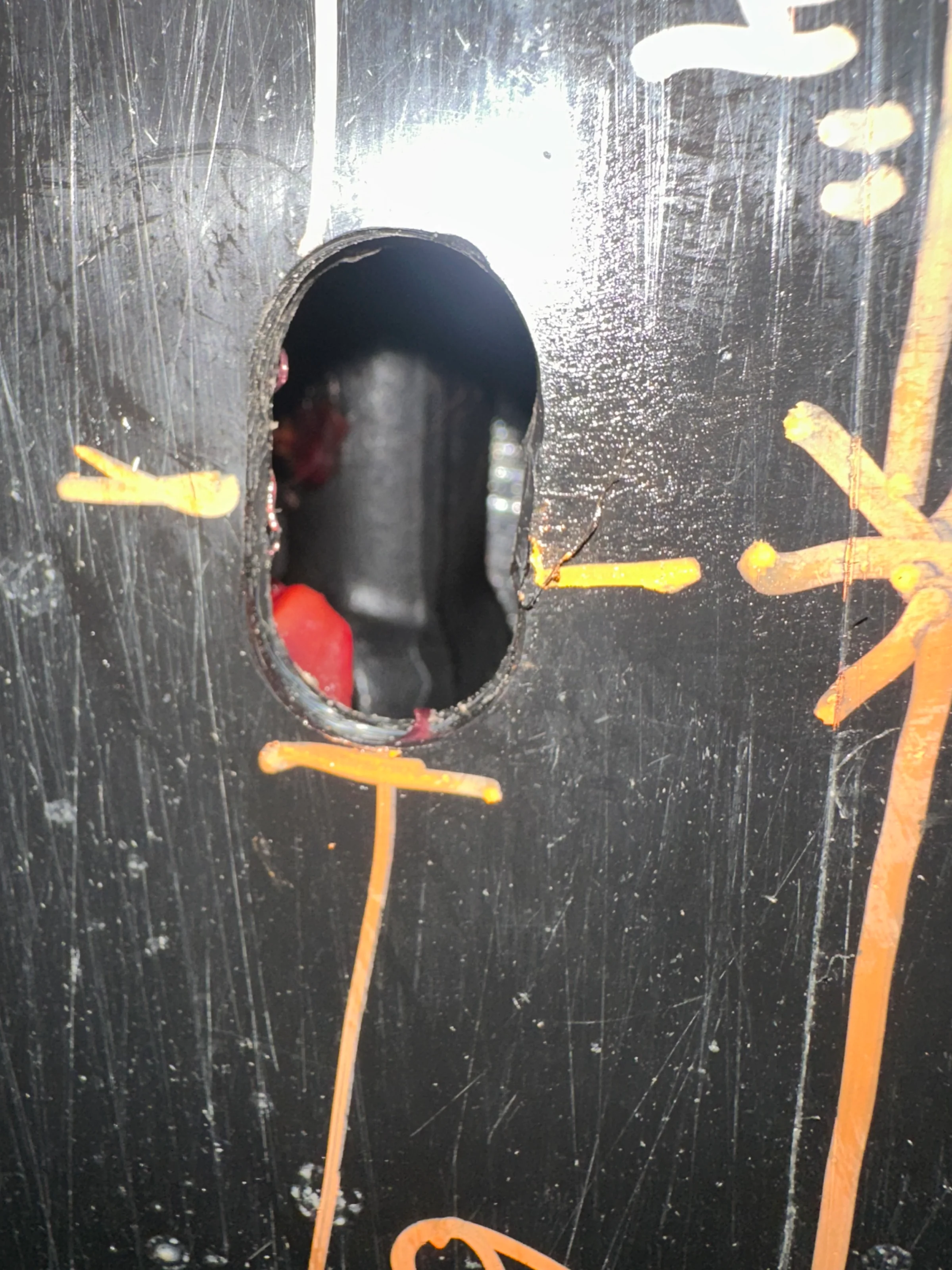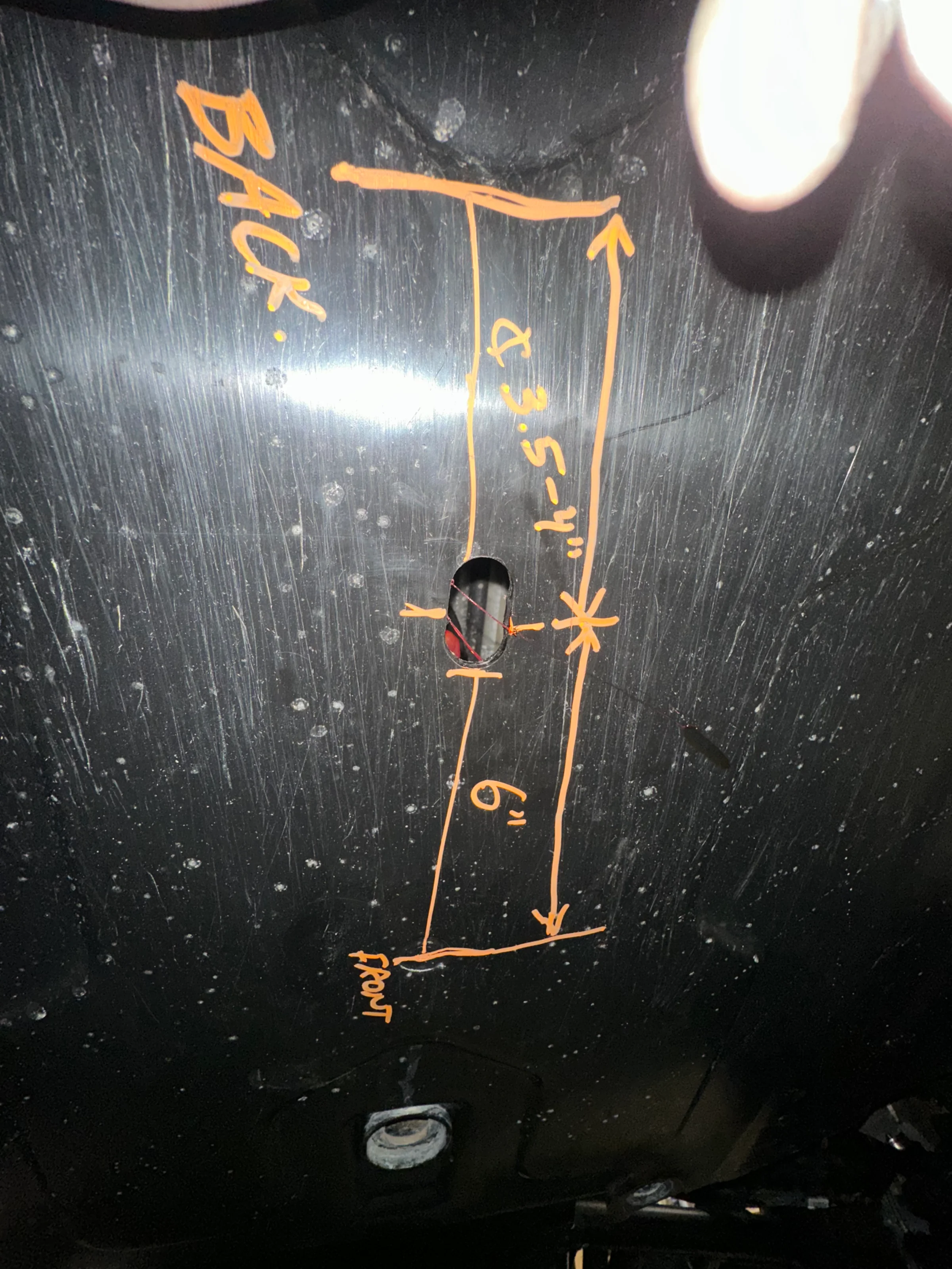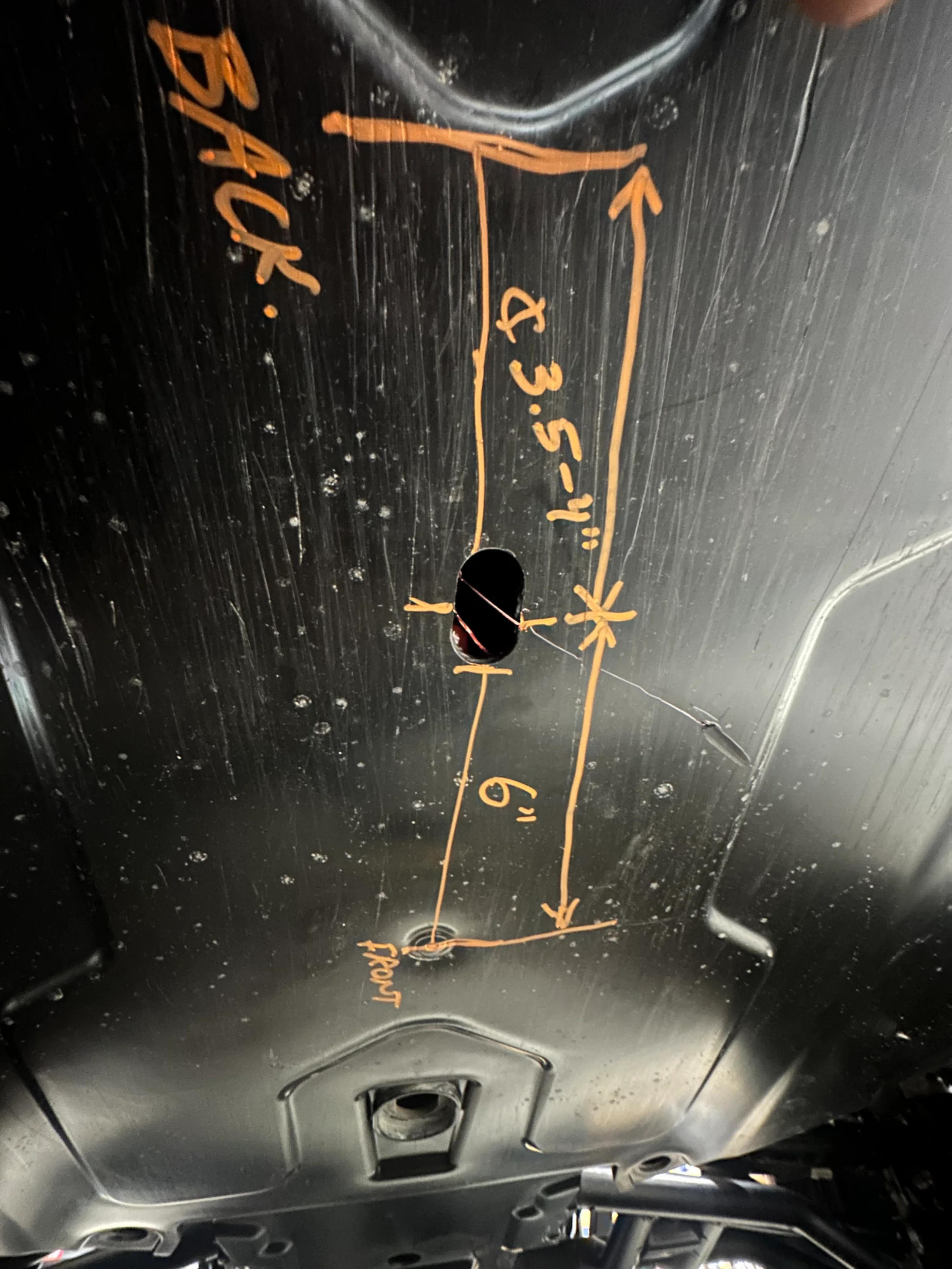 For anyone that’s interested here’s a measurements and location to drill a 1 inch hole for accessing the front Grease Zirk on the driveshaft. I drilled a 3/4” oval hole. Only because that was the way it worked.